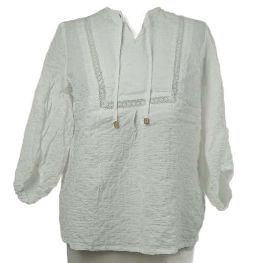 Dámska biela strukturovaná blúzka s čipkou Toni