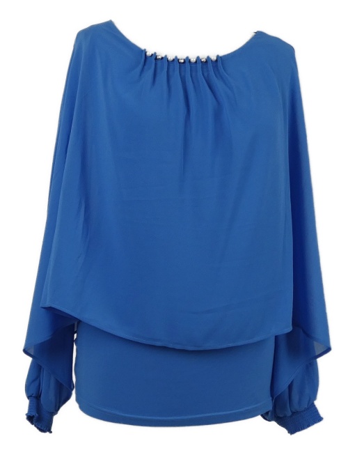 Dámska svetlomodrá šifónová voľné á blúzka s perličkami zn Orsay