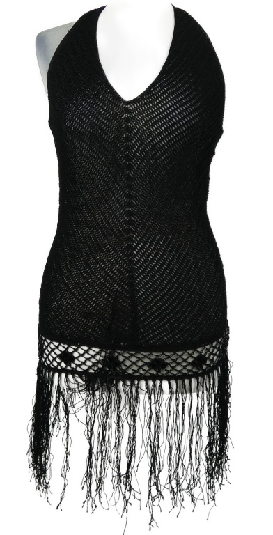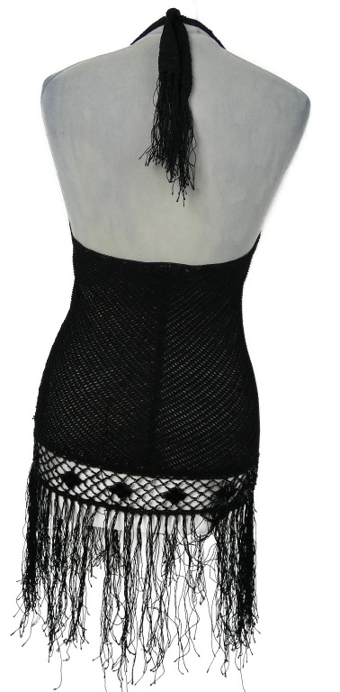 Dámska čierna háčkovaná tunika s strapcemi s korálkami MNG