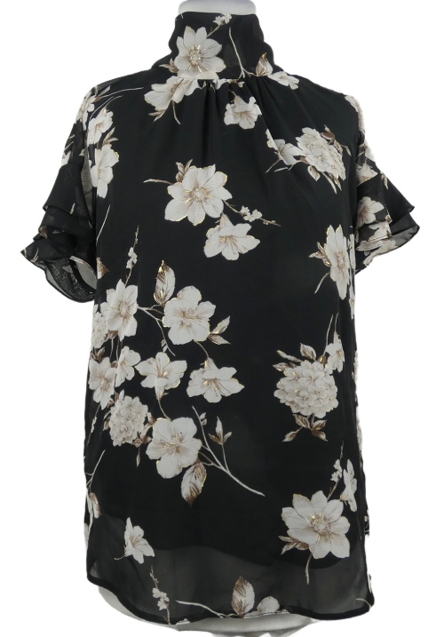 Dámska čierna kvetovaná šifónová blúzka s vázačkou M&Co