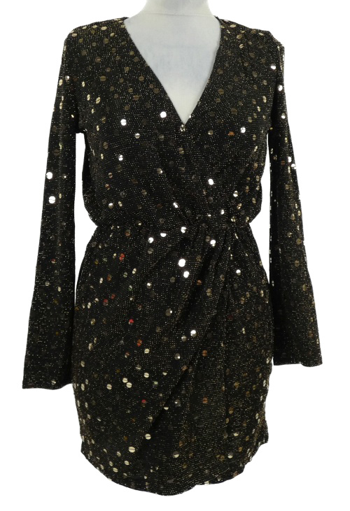 Dámska čierno-zlatá bodkovaná trblietavá šatová tunika Flounce