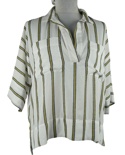 Dámska bielo-tmavomodro-okrová pruhovaná blúzka H&M