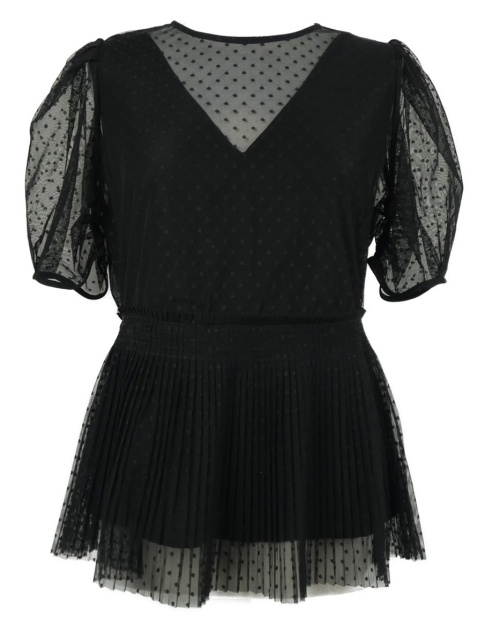 Dámska čierna bodkovaná tylová plisovaná blúzka M&S