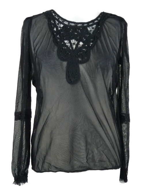 Dámska čierna tylová blúzka s čipkou BikBok