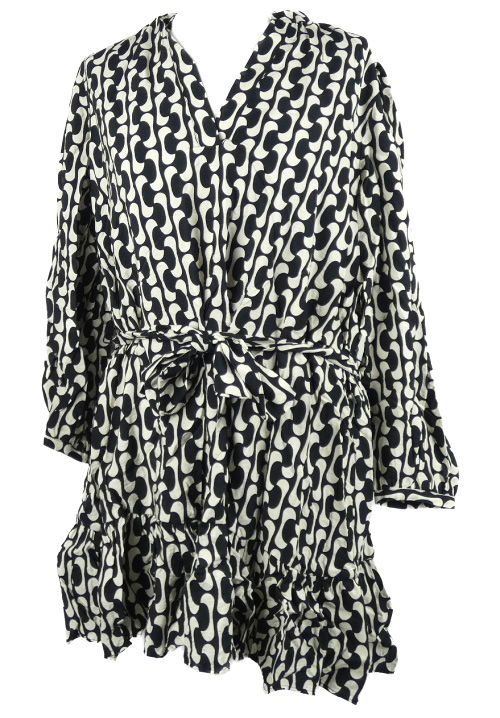 Dámska čierno-béžová vzorovaná šatová tunika s opaskom Zara