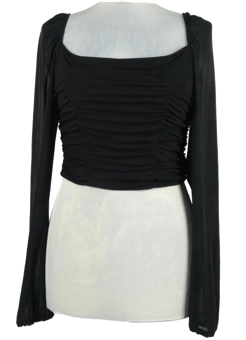 Dámske čierne tylové řasené crop tričko H&M