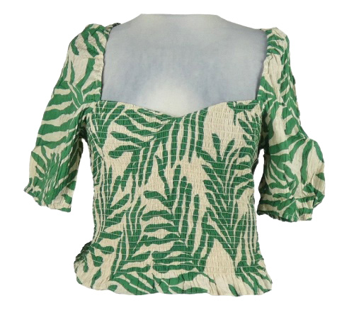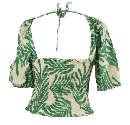 Dámska béžovo-zelená vzorovaná žabičková crop blúzka H&M