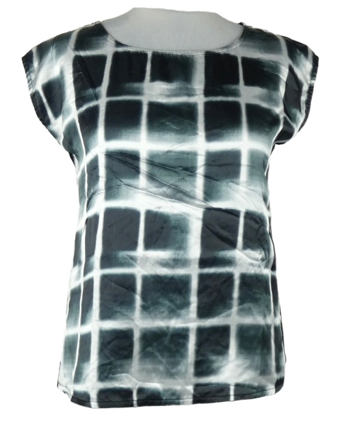Dámska čierno-sivá kockovaná saténová blúzka