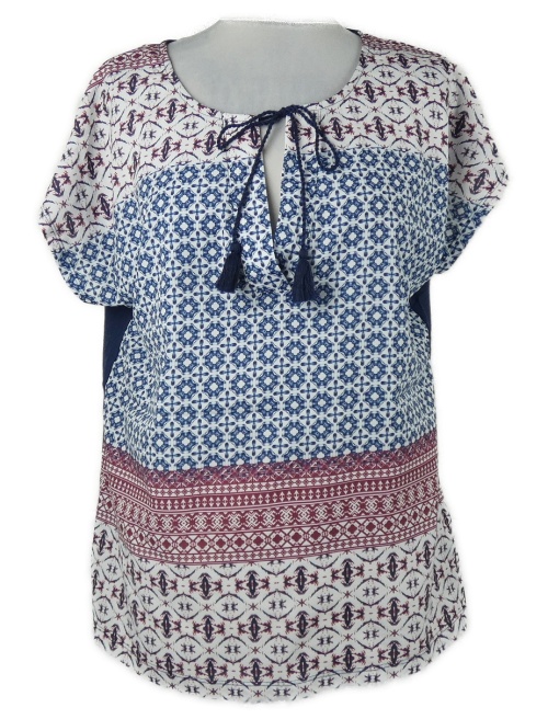 Dámska tmavomodro-bielo-vínová vzorovaná blúzka Bodyflirt