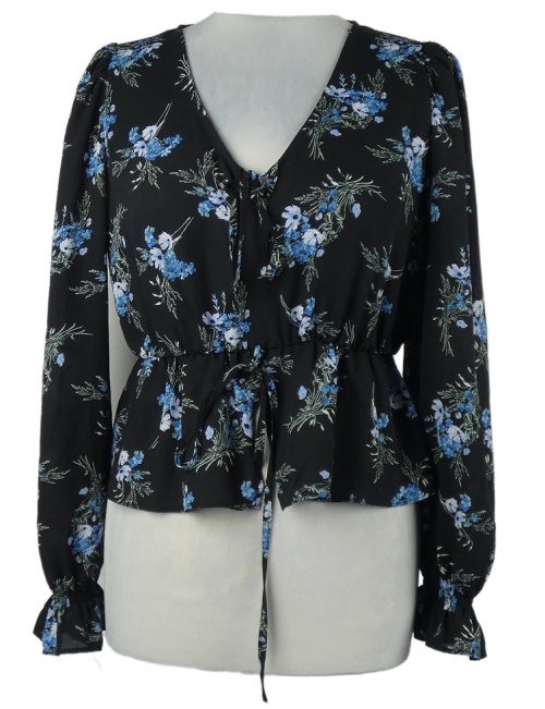 Dámska čierna kvetovaná peplum blúzka Primark
