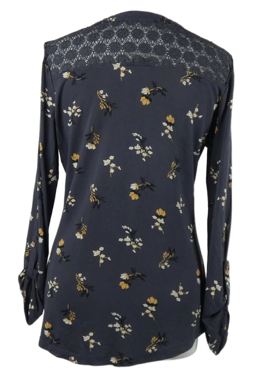 Dámske tmavosivé kvietkovane tričko s čipkou Roman