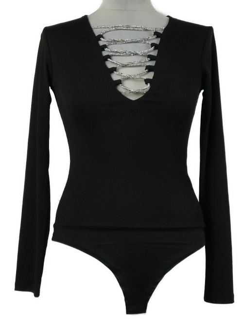 Dámske čierne rebrované body so šnurovaním Amisu