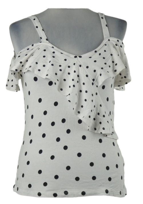 Dámska biela bodkovaná blúzka s volnými rameny a volánikom Dorothy Perkins