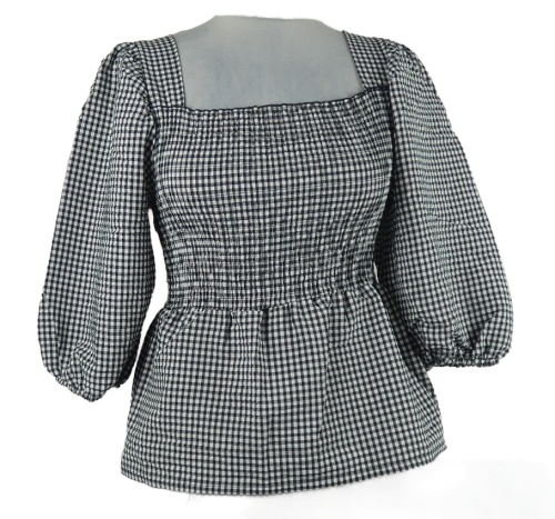 Dámska čierno-biela kockovaná žabičkovaná crop blúzka Peacocks