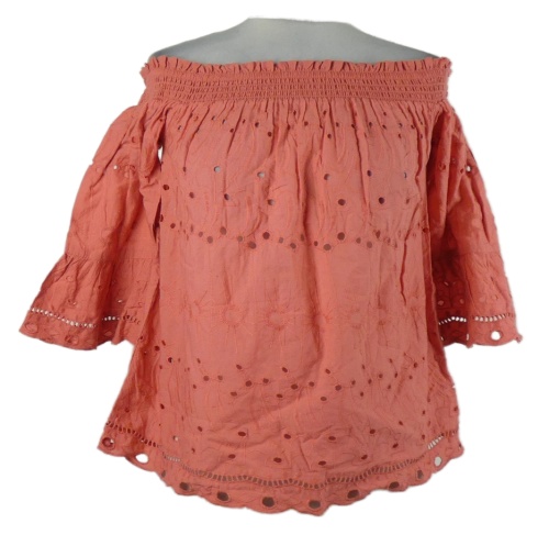 Dámska korálová madeirová blúzka s lodičkovým výstřihem