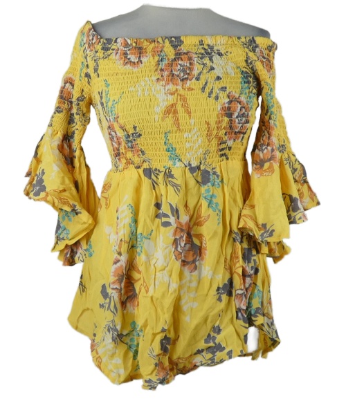 Dámska žltá kvetovaná žabičková tunika s lodičkovým výstřihem River Island
