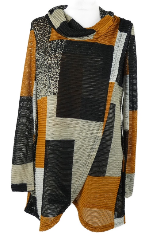 Dámska skořicovo-čierno-béžová perforovaná blúzka s golierom Izabel