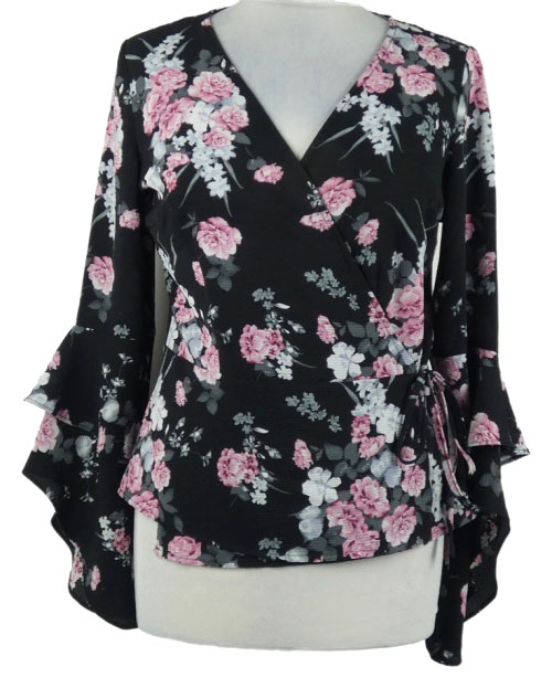 Dámska čierna kvetovaná peplum zavinovací blúzka Quiz