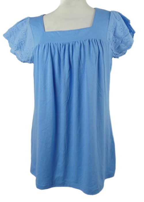 Dámska svetlomodrá blúzka s madeirovými volániky