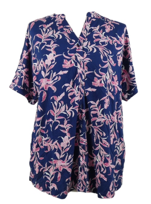 Dámska tmavomodro-ružová kvetovaná blúzka