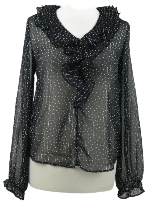 Dámska čierna bodkovaná šifónová blúzka s fiží Page one young