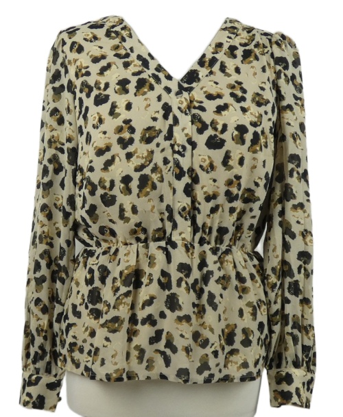 Dámska béžovo-čierna vzorovaná šifónová peplum blúzka