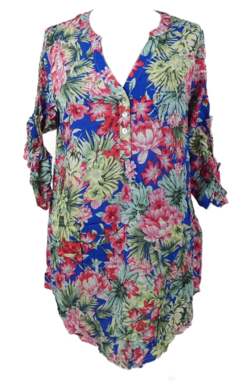 Dámska modro-ružovo-zelená kvetovaná blúzková á tunika s cvokmi