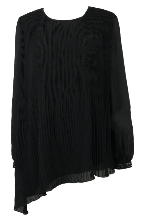 Dámska čierna šifónová plisovaná blúzka s cvokmi Wallis