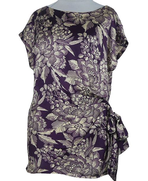 Dámksá purpurovo-smotanová kvetovaná saténová blúzka s mašlou