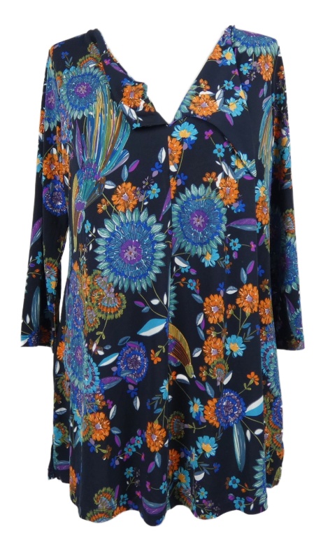 Dámska tmavomodrá kvetovaná blúzková á tunika Renne
