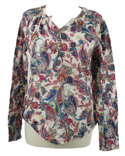 Dámska bielo-ružovo-modrá vzorovaná blúzka C&A