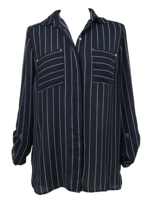 Dámska tmavomodrá prúžkovaná blúzka s rolovacími rukávy Colloseum