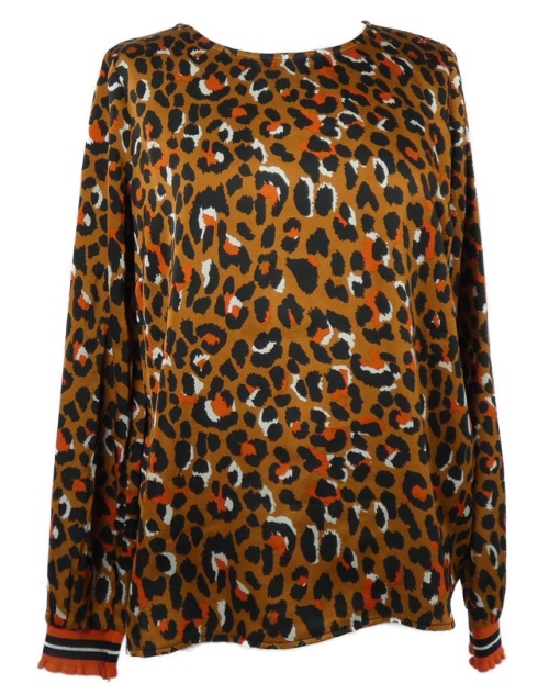 Dámska skořicovo-čierno-červená vzorovaná saténová blúzka
