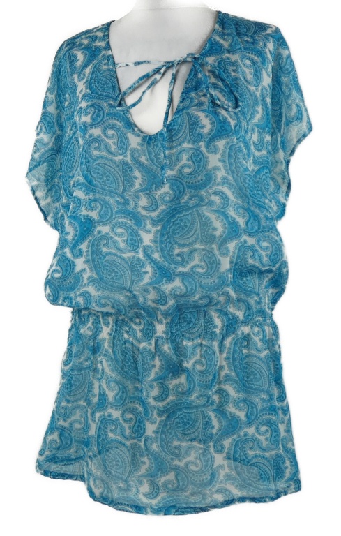 Dámska tyrkysovo-biela vzorovaná šifónová plážová tunika