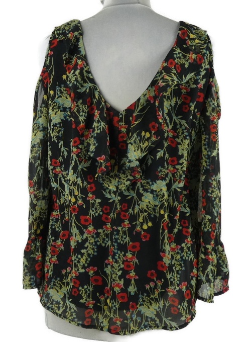 Dámska čierna kvetovaná šifónová blúzka s volnými rameny C&A