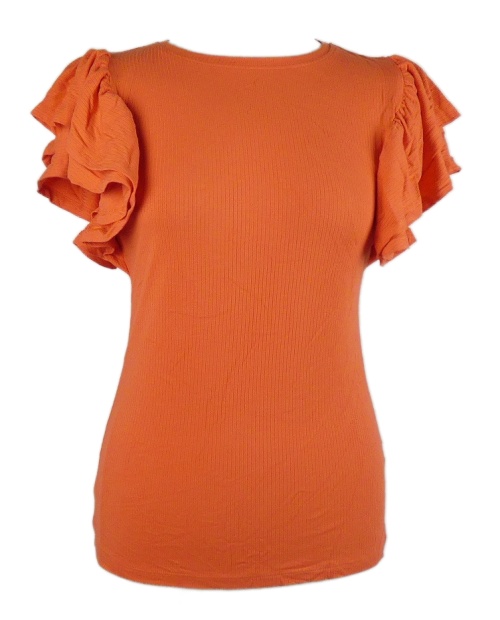 Dámska korálová rebrovaná blúzka s volánikmi TU