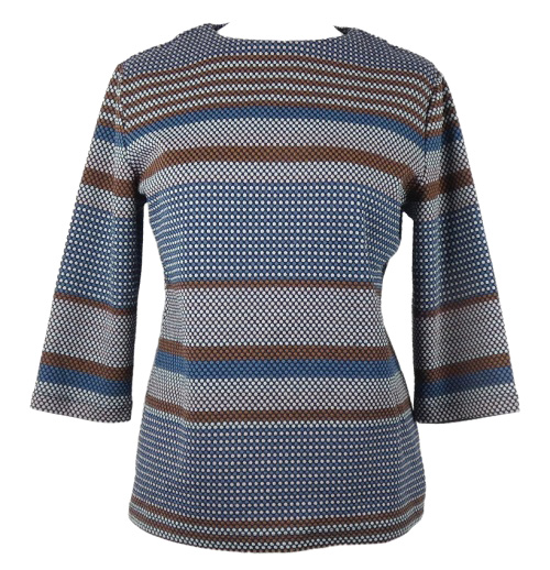 Dámska modro-hnedo-svetloružová vzorovaná blúzka