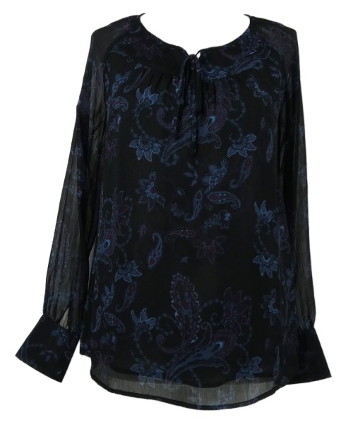 Dámska čierna šifónová blúzka so vzorom TCM