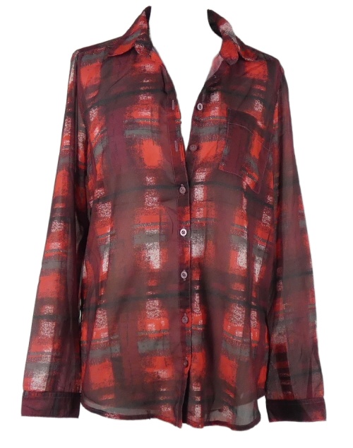 Dámska červeno-vínová kockovaná šifónová blúzka Janina