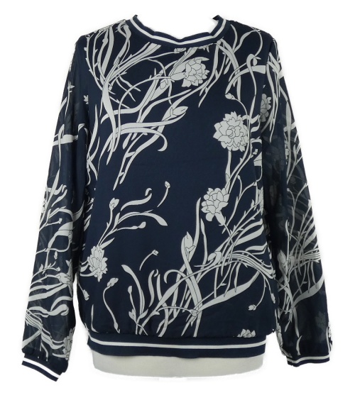 Dámska tmavomodrá šifónová blúzka s kvetmi Pep