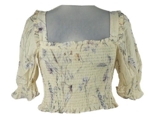 Dámska smotanová žabičková kvetovaná crop blúzka H&M
