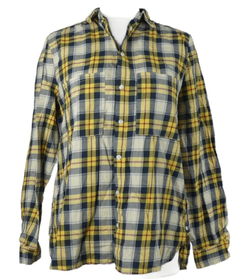 Dámska žlto-tmavomodrá kockovaná blúzka