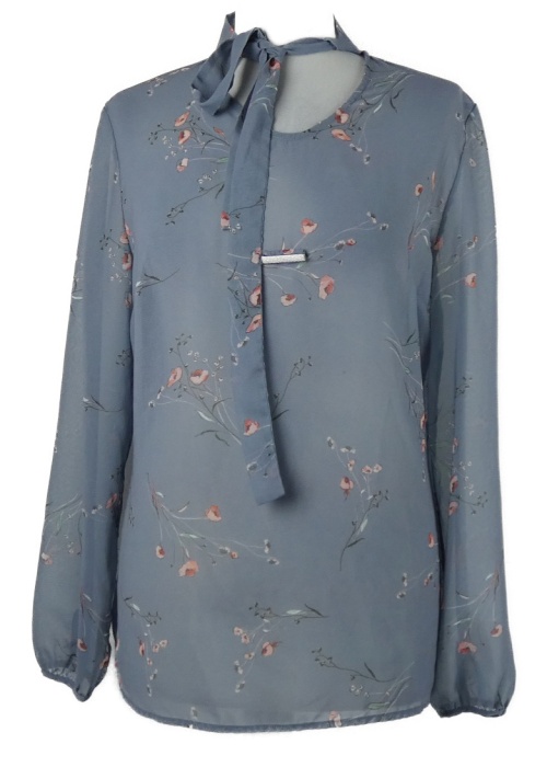 Dámska sivá kvetovaná šifónová blúzka s vázačkou Qiero
