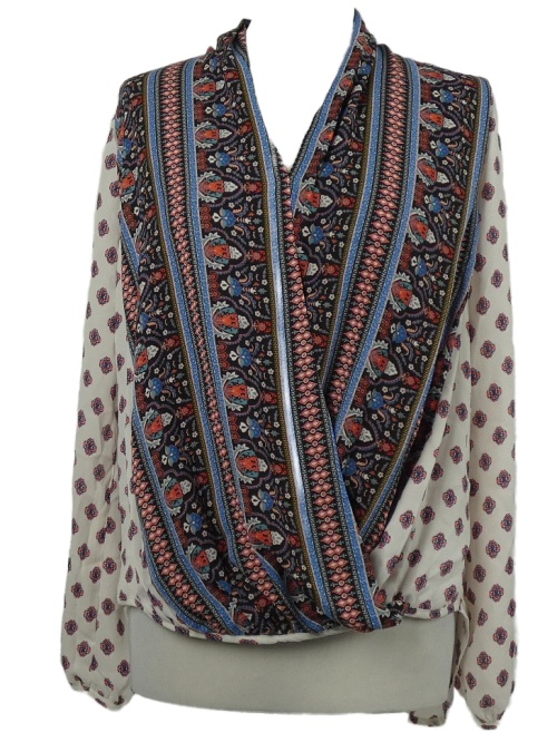 Dámska bielo-farebná vzorovaná šifónová balonová blúzka EyeShadow