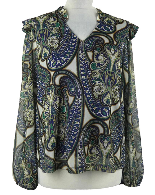 Dámska tmavomodro-zeleno-hnedá vzorovaná tylová blúzka Next