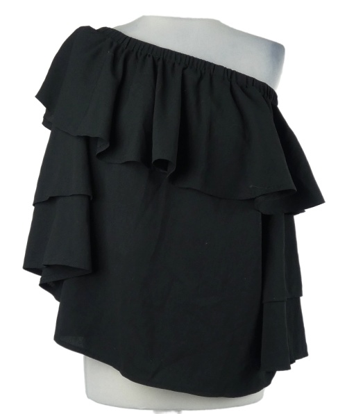 Dámska čierna blúzka s lodičkovým výstřihem a volánem Boohoo