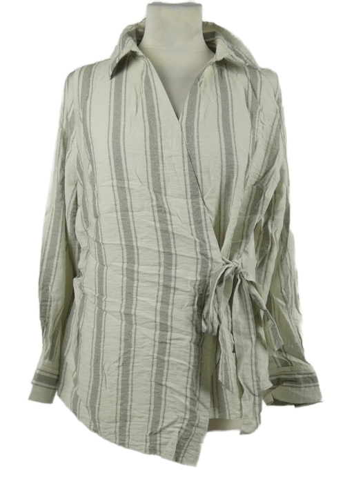 Dámska smetanovo-sivá pruhovaná zavinovací blúzka