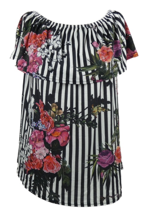Dámska čierno-biela pruhovaná blúzková á tunika s kvetmi a lodičkovým výstřihem Simply Be
