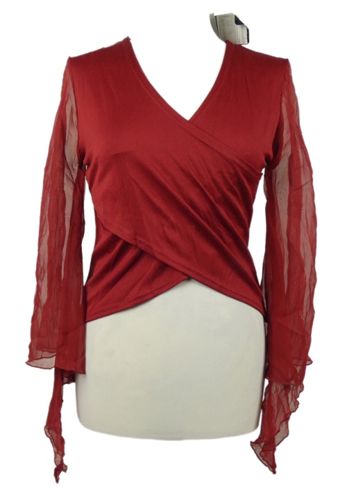 Nové - Dámska karmínová crop blúzka s šifónovymi rukávy C&A