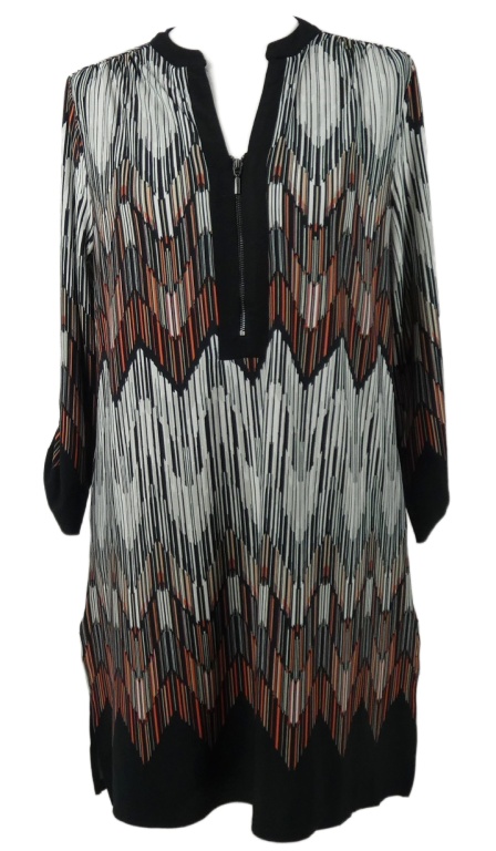 Dámska čierno-bielo-oranžová vzorovaná šatová tunika Roman